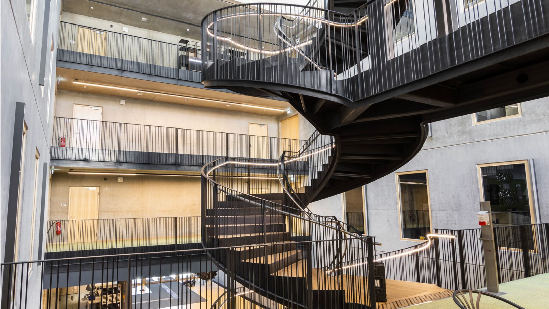 Le projet d’escalier en acier pour LSC Engineering Group à Contern, Luxembourg, constitue le centre architectural et fonctionnel du nouvel immeuble de bureaux qui regroupe environ 300 employés. L’atrium, véritable cœur du bâtiment, s’organise autour de cet escalier monumental en acier brut, conçu en collaboration entre l’architecte Camille Dengler et LSC Engineering pour allier esthétisme et fonctionnalité. L’escalier présente une structure optimisée, partiellement suspendue à une passerelle béton au 3e étage et sans fût central, reposant sur la dalle du rez-de-chaussée comme un ressort géant.