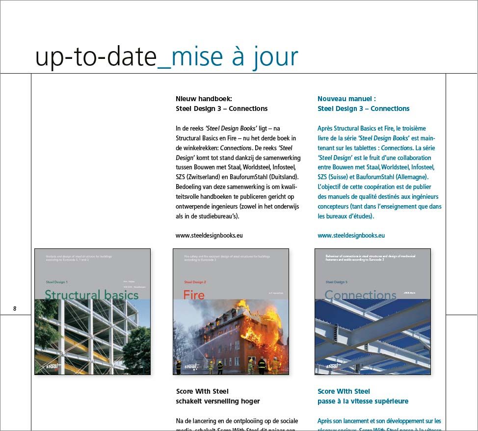 Nouveau manuel : Steel Design 3 – Connections / Score With Steel passe à la vitesse supérieure / Calculer l’impact environnemental des bâtiments – TOTEM / Brexit et marquage CE