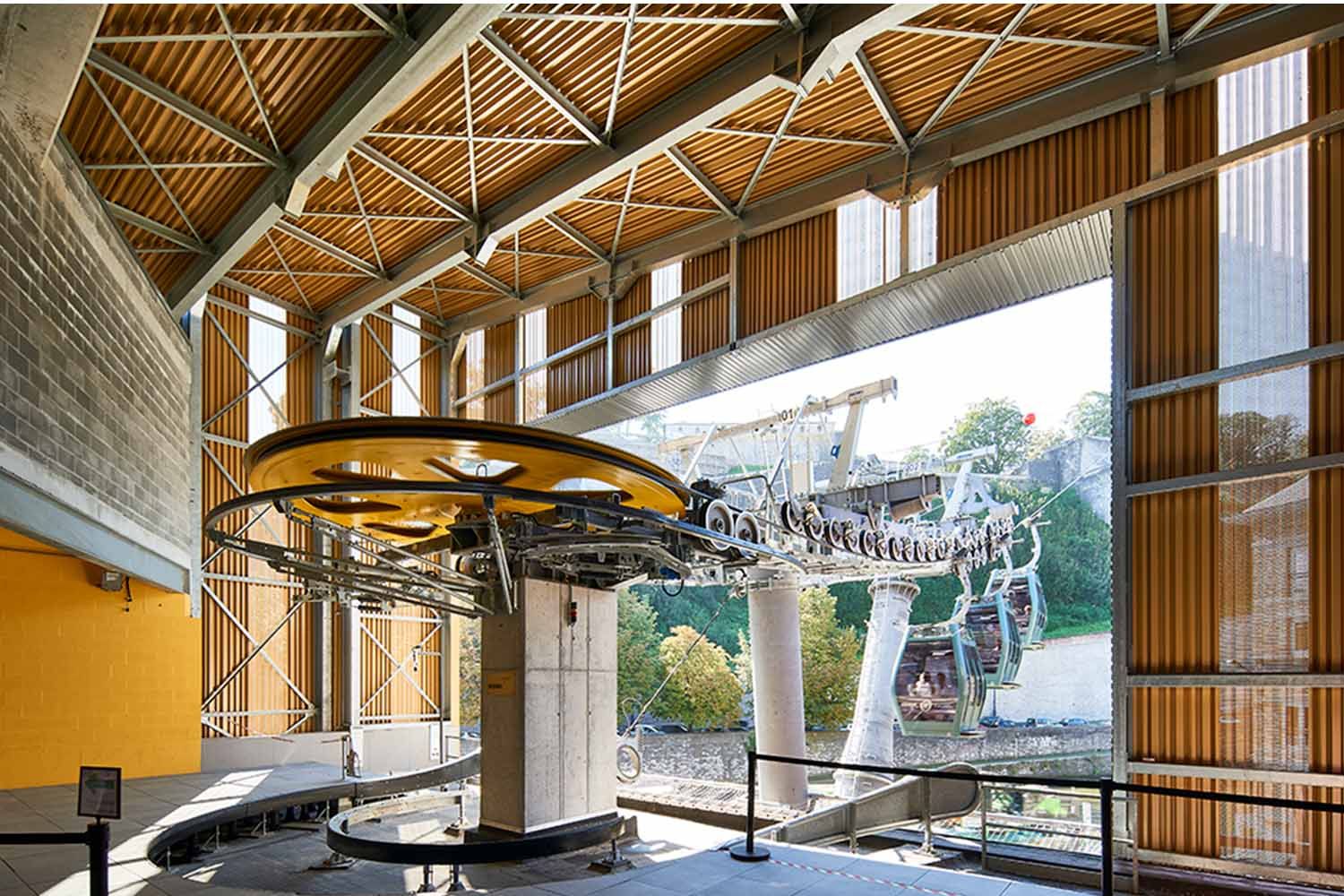 Téléphérique de Namur : des façades en acier or