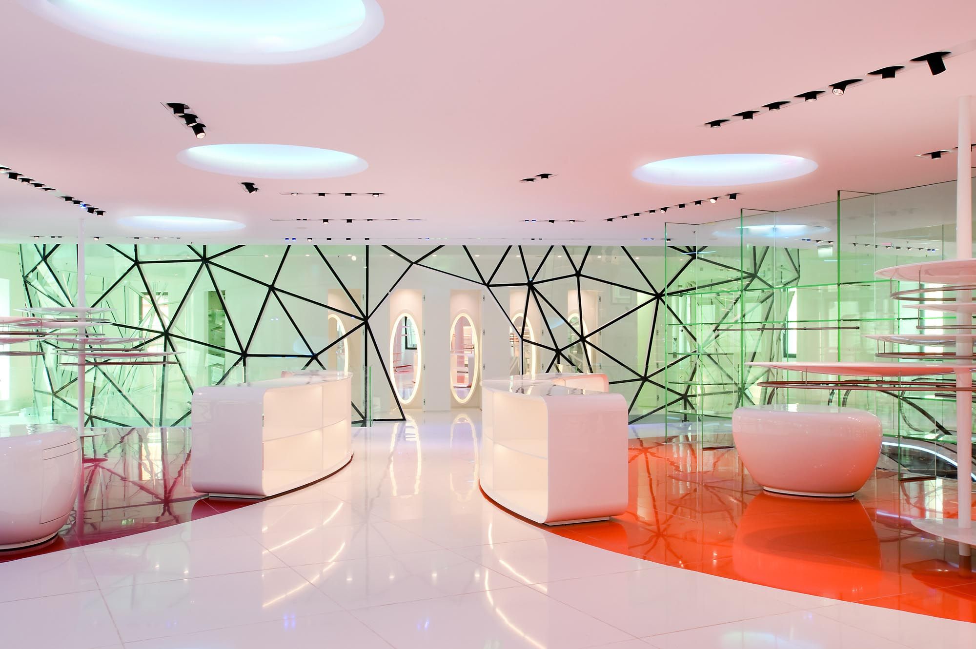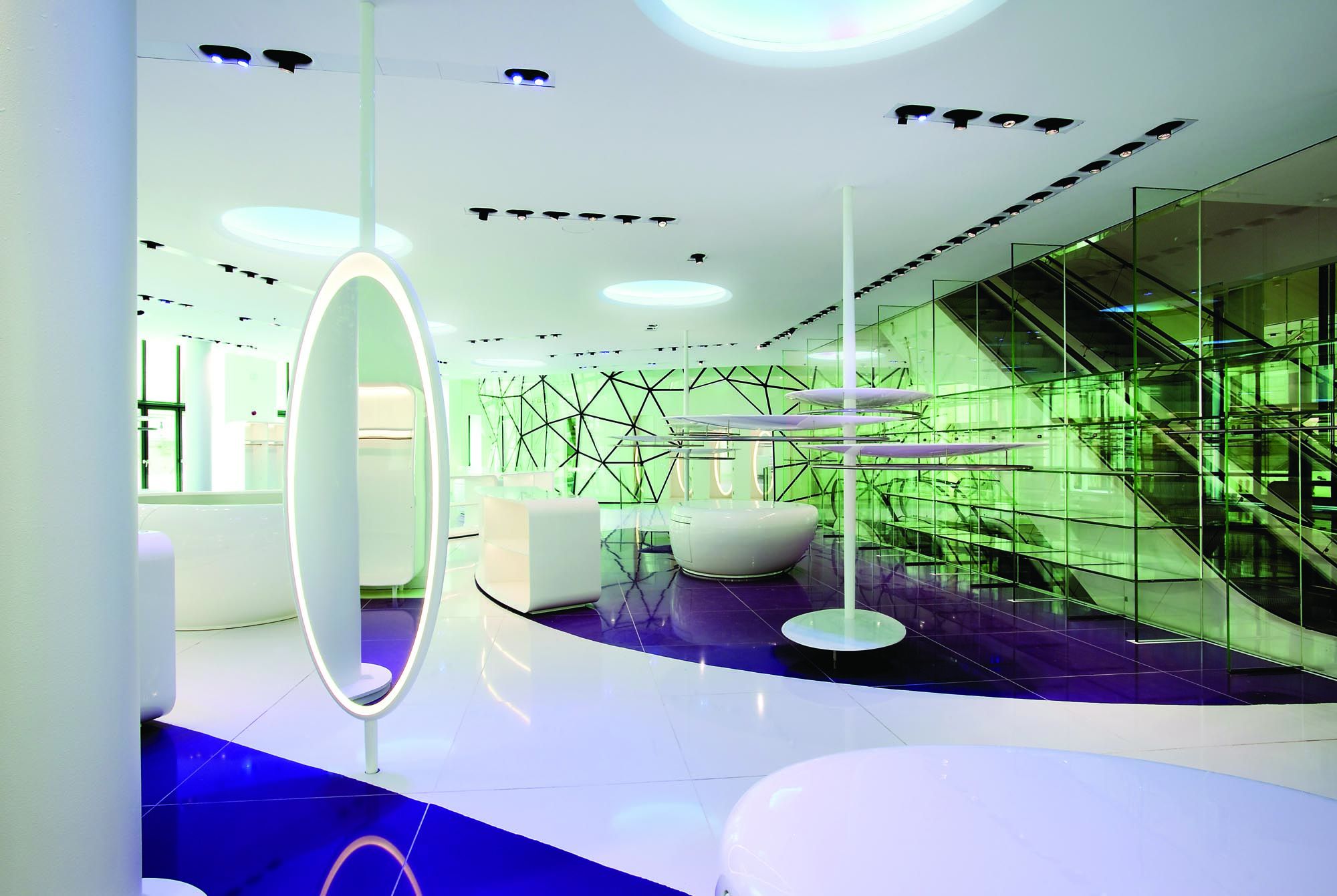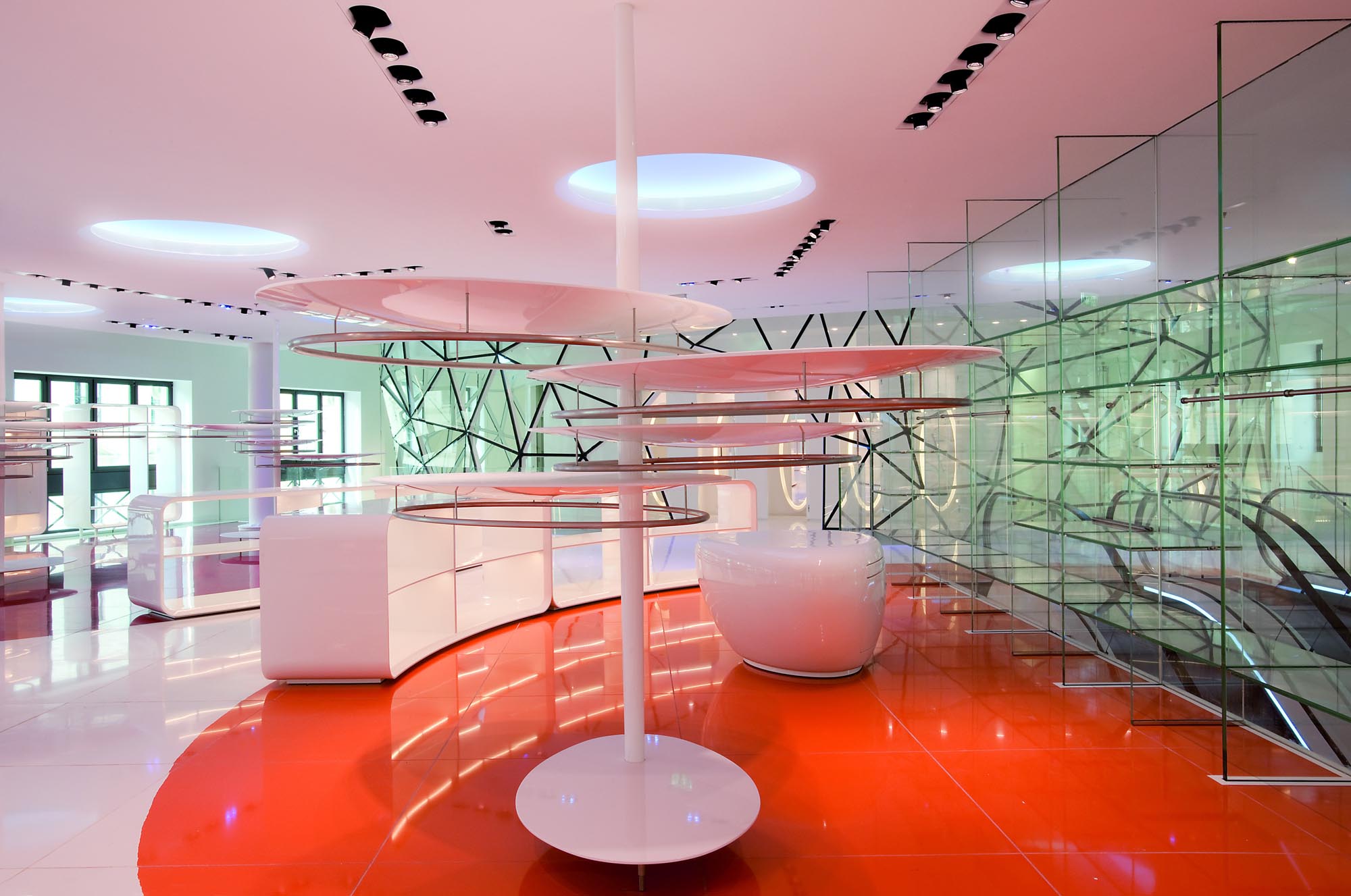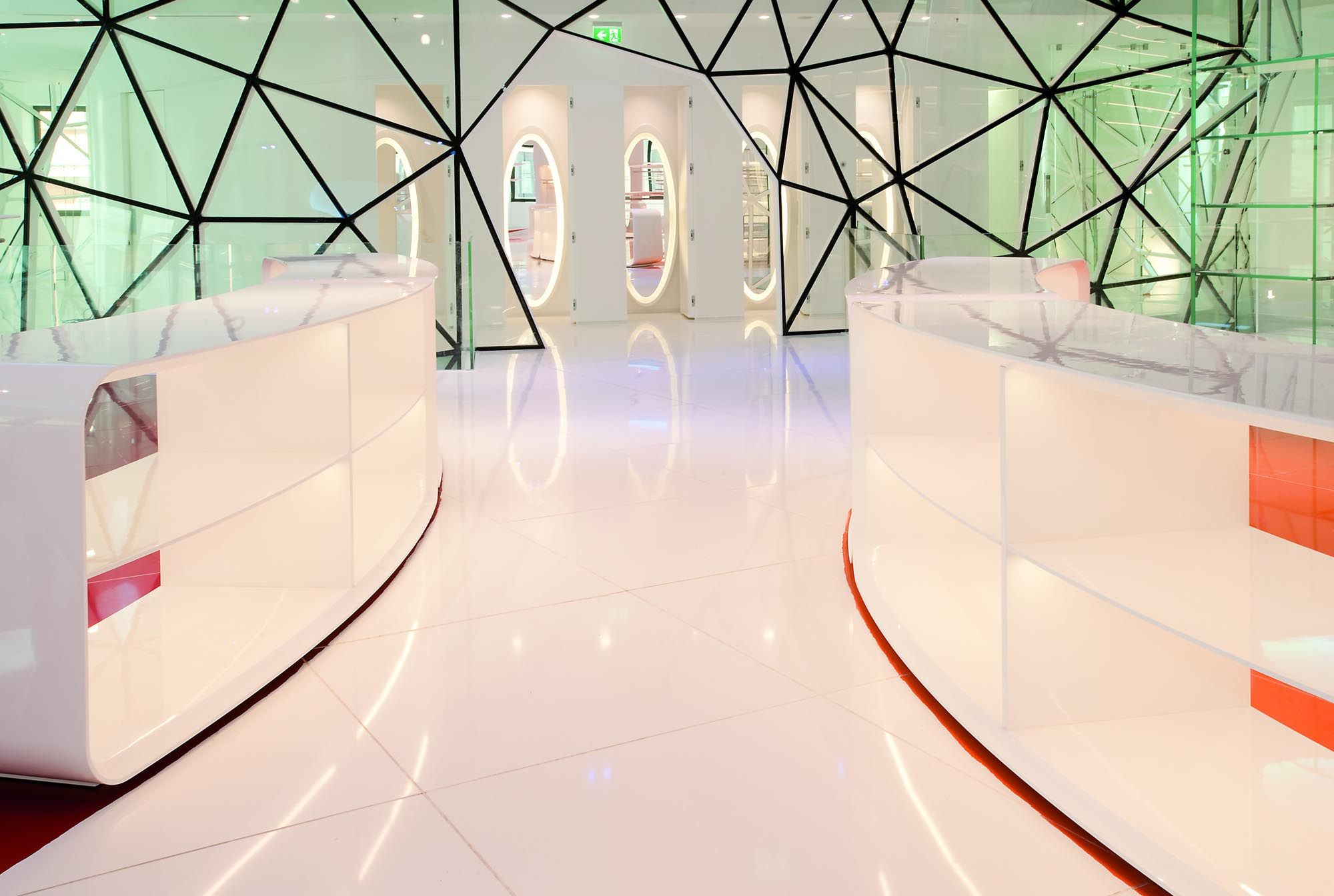Een trap met door LED verlichte glazen treden en spiegelende oppervlakken vervolledigt het interieurontwerp en verbindt de ruimtes. Ten slotte biedt een glazen vloer op de benedenverdieping zicht op sommige van de archeologische overblijfselen die tijdens de werkzaamheden aan het licht zijn gekomen.
