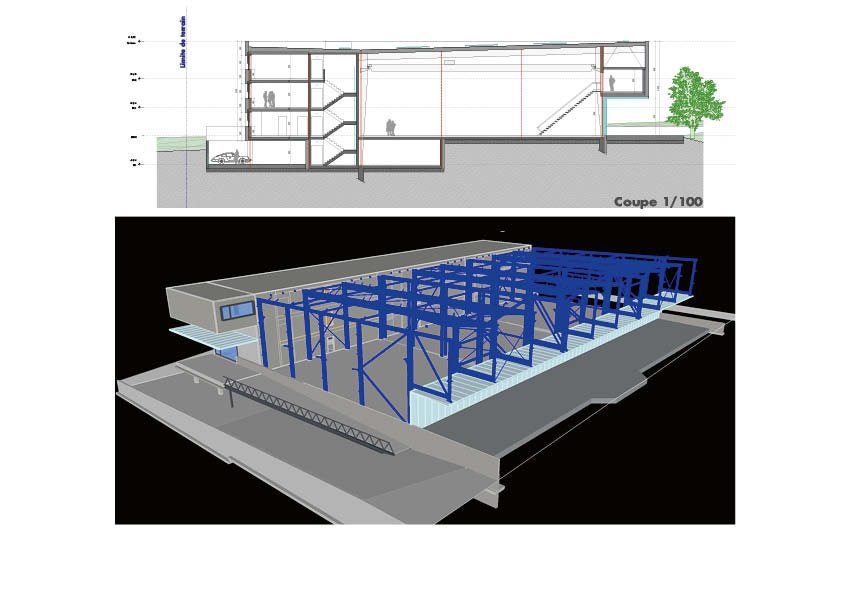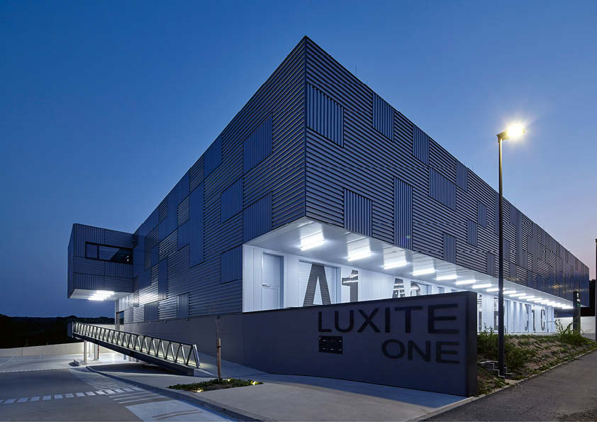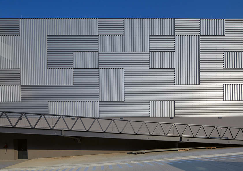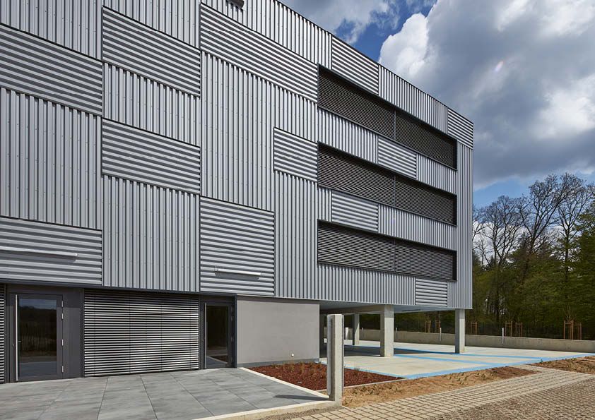 De gebouwen omvatten twee grote functies: kantoren en industriële hallen, aangevuld met gemeenschappelijke ruimtes. Dit resulteert in een flexibel en modulair geheel. Staal is er alomtegenwoordig: draagstructuur (het volledige skelet van de hallen), dak, schil (sandwichpanelen + gevelbekleding) en afwerking/sloten (meer bepaald borstweringen, leuningen in de trappenhuizen en binnendeuren). De gevels met een metaalbekleding (georiënteerde sandwichpanelen) hebben een variabele dynamiek, waarvan de esthetiek dankzij de schaduwwerking varieert naargelang de tijd en de seizoenen. Het gebruik van staal werd gerechtvaardigd door de nood aan een snelle uitvoering op basis van een strakke planning (een week montagetijd voor de draagstructuur), de grote overspanning van de draagstructuur (hal met open grondplan en uitkraging boven de vrachtwagentoegang, die enkel realiseerbaar was in staal) en de vereiste flexibiliteit van de ruimtes.
